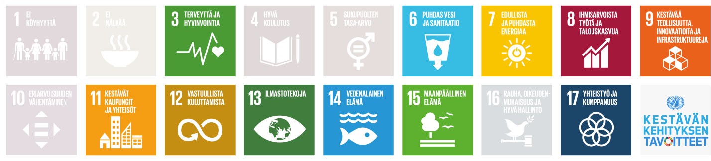 Yhdistyneiden kansakuntien kestävän kehityksen tavoitteet määrittelevät kansainväliset kestävän kehityksen painopistealueet ja tavoitteet, jotka on saavutettava vuoteen 2030 mennessä. Copla Oy tahtoo tehdä oman osansa ja edistää näiden tavoitteiden saavuttamista arvoketjussamme. YK:n tavoitteissa on uusia liiketoimintamahdollisuuksia, mutta pyrimme myös kantamaan vastuun kielteisistä vaikutuksistamme ja ehkäisemään niitä.